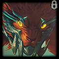 - (7) 20 Giáp và Kháng Phép. Khi Hiệu Triệu, trừng phạt các kẻ địch một lượng tương đương 5% Máu tối đa của chúng.