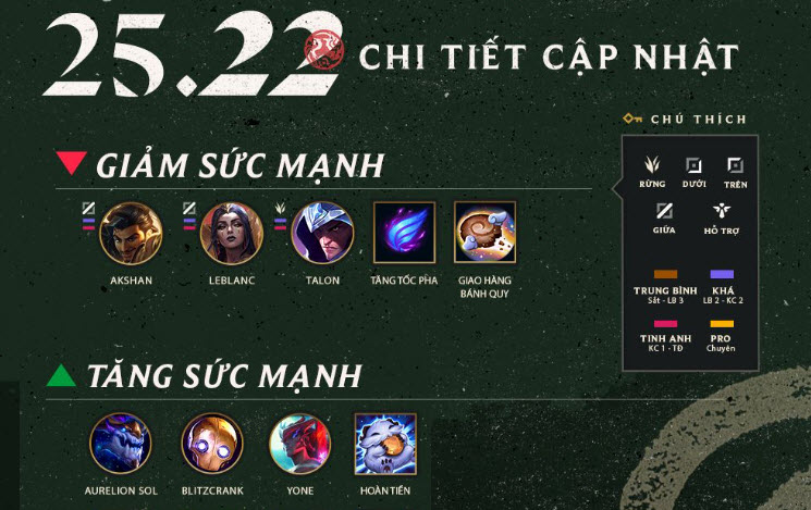 Tóm tắt cập nhật LOL 25.22 mới nhất